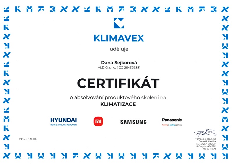 Pro objednání montáže nás kontaktujte na obchod@aldig.cz nebo +420 736 489 064. DPH se může lišit (12%, 21%, 0%) v závislosti na vlastníkovi klimatizace (fyzická osoba, právnická osoba...).